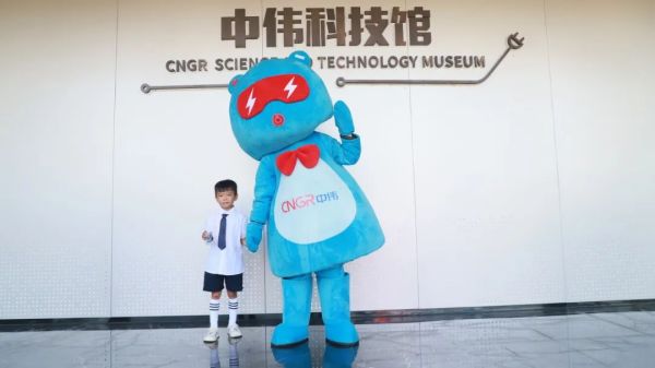 在中偉科技館門口,呆萌可愛的中偉品牌IP“鋰電寶寶”一下子吸引了小朋友們的注意力,在“鋰電寶寶”的指引下,他們懷著無比好奇的心情進(jìn)入科技館,解鎖新能源材料的應(yīng)用密碼。