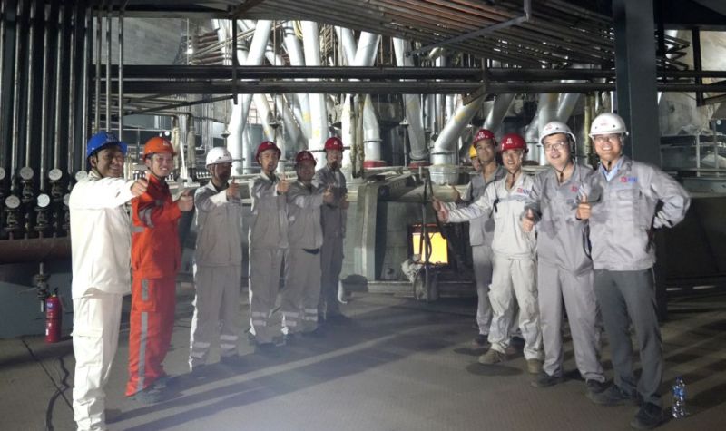 2022年8月,項目進(jìn)入最后的沖刺階段。作為項目建設(shè)負(fù)責(zé)人,劉寅更是駐守到一線,在工地、車間現(xiàn)場,帶領(lǐng)設(shè)備安裝管理團(tuán)隊,專攻調(diào)試期間的現(xiàn)場突發(fā)問題,實行“24小時現(xiàn)場排班制”,一刻不漏盯現(xiàn)場、盯設(shè)備、盯產(chǎn)線。8月份的印尼正值高溫高熱季節(jié),劉寅的身先士卒也影響了所有項目建設(shè)、調(diào)試人員,最終大家團(tuán)結(jié)一心,奮力沖刺,最終打贏了這場“硬仗”?;貞涍@段經(jīng)歷,劉寅至今印象深刻,他幽默地說道:“大家24小時都在現(xiàn)場,每天一身臭汗,全部變成了‘油膩男’,但每個人眼神中的堅毅讓我相信項目一定能成。那是一段難忘的經(jīng)歷,很榮幸與他們在同一條’戰(zhàn)壕‘里作戰(zhàn),一起為勝利而戰(zhàn)!”