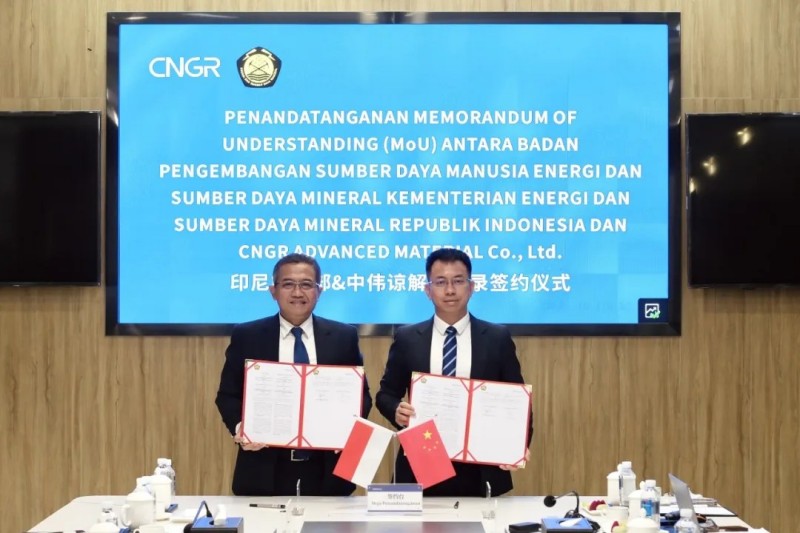 在與會(huì)人員的共同見證下,劉一與Prahoro Yulijanto Nurtjahyo分別代表中偉和印尼能礦部簽署《合作諒解備忘錄》。