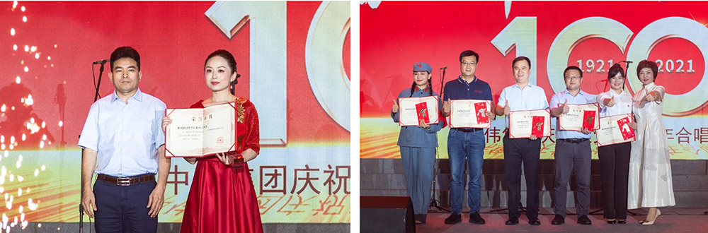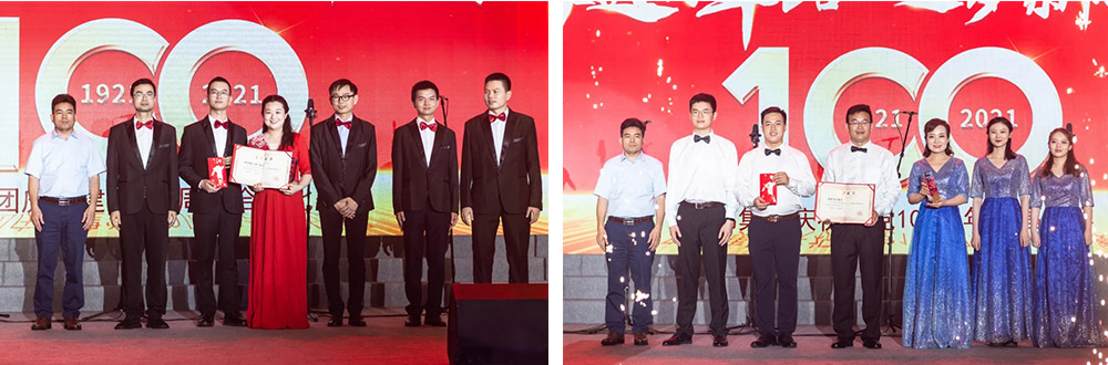 此次活動(dòng)還舉行了“黨員先鋒崗”的頒獎(jiǎng)儀式,來(lái)自全集團(tuán)的10名黨員先鋒榮獲此殊榮,并隨后與其他部分黨員代表一起重溫了入黨誓詞。聲聲誓言響徹耳邊,鮮紅的黨旗在舞臺(tái)上飄揚(yáng)。晚會(huì)尾聲,全場(chǎng)起立,共同高唱《沒(méi)有共產(chǎn)黨就沒(méi)有新中國(guó)》,熱烈的掌聲經(jīng)久不息。