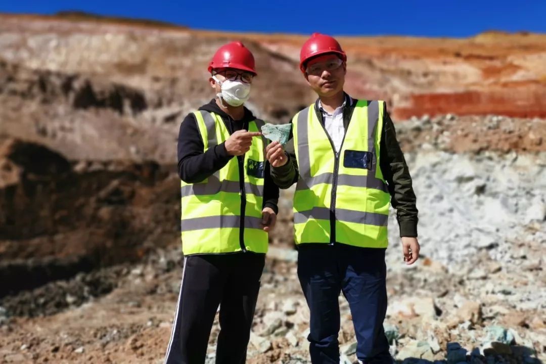 黃星(右)赴非洲出差時(shí),和同事在當(dāng)?shù)氐V山留影