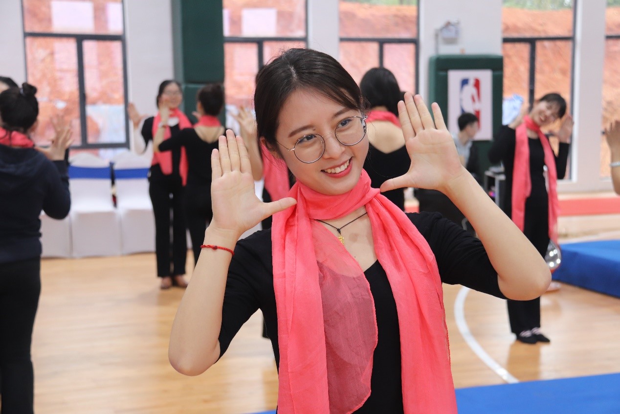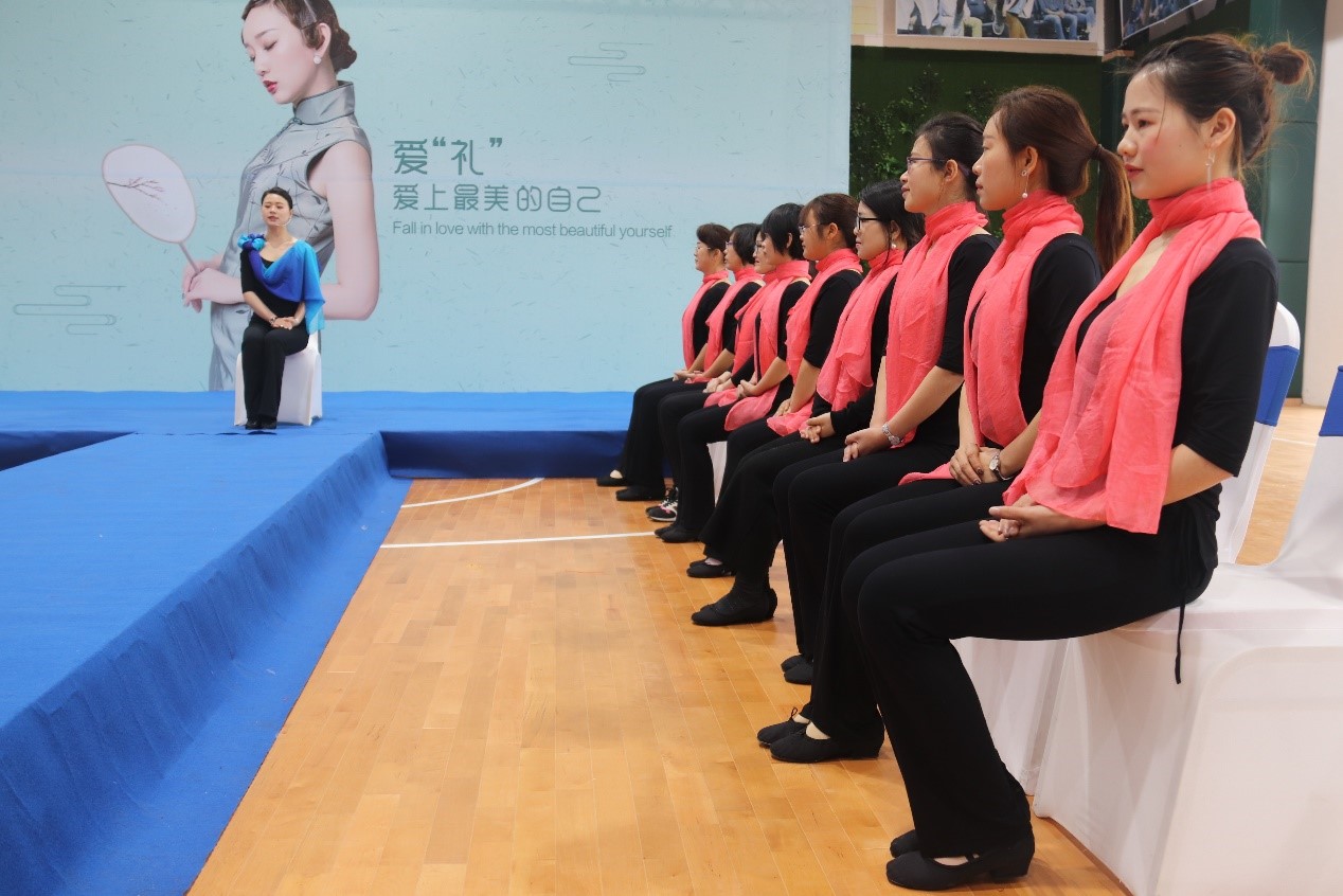 吳小歌女士與中偉女員工一同參與儀態(tài)訓(xùn)練