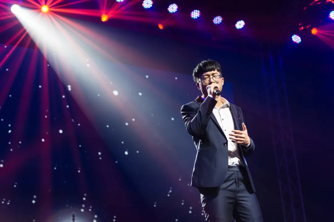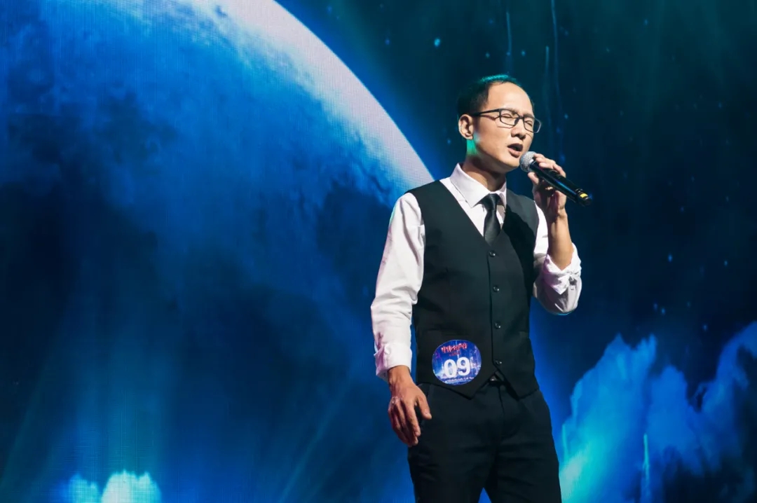 在觀看完第一位選手的VCR后,第一輪較量正式開始,來自新材料研究院的楊軼涵率先打響“第一槍”,用一首《蝴蝶泉邊》展現(xiàn)了自己的青春活力。緊接著,來自中部產(chǎn)業(yè)基地四鈷一車間,號稱“中偉蕭敬騰”的彭亞飛頭戴草帽、身著“沙灘裝”,用一首《海芋戀》將觀眾們帶回到悠長夏日的海邊;連續(xù)兩年入圍決賽、來自西部產(chǎn)業(yè)基地的劉剛獻唱《陷阱》,展現(xiàn)了車間主任的“鐵漢柔情”;來自漢華京電的劉振南上演《餓狼傳說》,以獨特的嗓音和魅力將那個屬于“四大天王”的時代再度展現(xiàn)在了觀眾眼前。