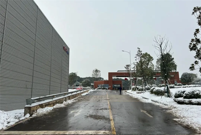 面對突如其來的大雪,西部、中部產(chǎn)業(yè)基地迅速形成系統(tǒng)完備、科學(xué)規(guī)范、運(yùn)行有效的掃雪除冰工作體系——EHS部通過提前考察研判、及時發(fā)布警示通知、成立應(yīng)急工作小組等方式積極應(yīng)對,對現(xiàn)場情況仔細(xì)巡檢,組織人員清掃主干道區(qū)域積雪、潑灑鈉鹽,對被積雪壓斷樹枝影響通行的路段進(jìn)行封閉和設(shè)置警戒標(biāo)志。與此同時,行政后勤全力調(diào)度,加開通勤班車、布置臨時客房、熬制暖身姜茶……全力做好后勤保障工作。